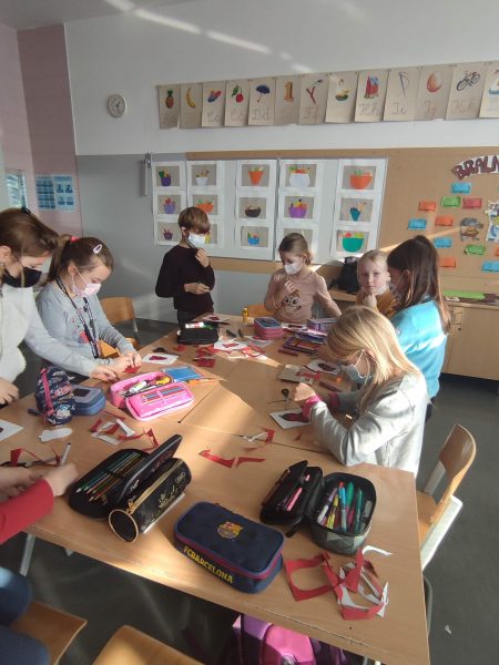 V mesecu decembru smo izdelovali novoletne voščilnice za starejše občane iz Občine Ivančna Gorica. Voščilnice so občanom razdelili člani Rdečega križa za novoletne praznike. Pridružili so se nam tudi učenci krožka uporabna umetnost, ki ga vodita mentorici Jasmina Glavič in Andreja Gospodarič. Žal se nismo družili med ustvarjanjem, saj smo morali delati v mehurčkih. Upamo, da bomo lahko v prihodnjih letih izvedli tudi skupno delavnico.