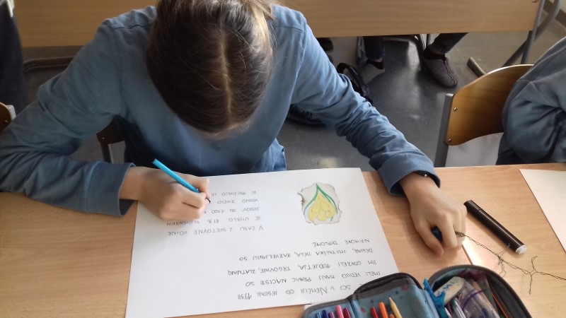 S pogovorom v razredu in razstavo na šolskem hodniku, so na primeren način spoznali in izpostavili temačno obdobje zgodovine, za katerega vsi skupaj upamo, da se nikoli več ne bo ponovilo.