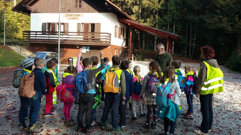 Pouk v učilnici so zamenjali za pouk v naravi, natančneje v gozdu. Zjutraj smo se odpravili v vas Znojile v lovski dom Krka. Na pol poti nas je že pričakal lovec, gospod Milan Globokar.