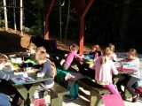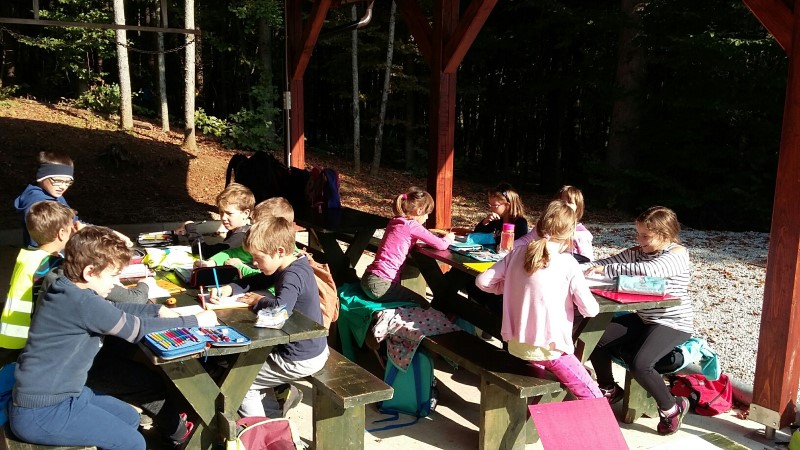 Učenci tretjega razreda pa so se skupaj z učiteljico učili o živalih v gozdu, imenu dreves, plodovih in listih dreves, katere so iskali v gozdu. Med delom je bil čas tudi za sprostitev in malico.