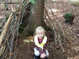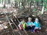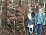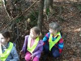 Potem so učenci prvega razreda z vzgojiteljico v gozdu oblikovali svoje izdelke iz naravnih materialov, in sicer iz vsega, kar so našli na tleh. Ničesar niso smeli lomiti ali trgati. Poglobili so se v delo in nastale so prav zanimive umetnine.