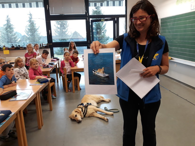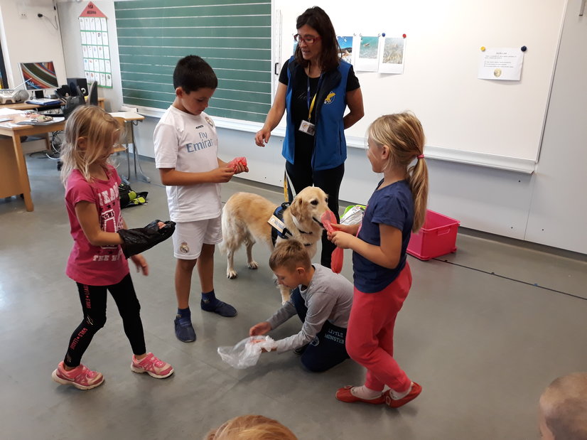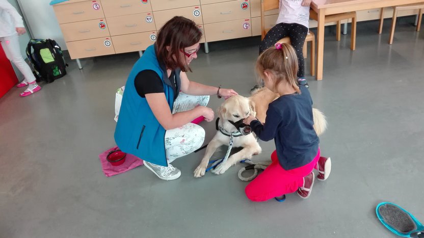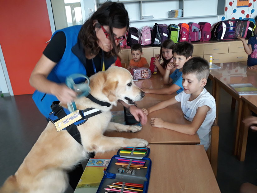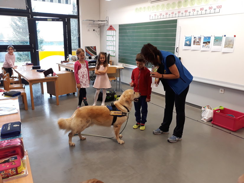 Drugošolce sta v okviru projekta Tačke pomagačke obiskala gospa Jana in terapevtski pes Oli, ki po šolah obiskuje učence in jim rad prisluhne pri branju. Star je 6 let. Ga. Jana, njegova vodnica, nam je Olija najprej predstavila in povedala, kaj rad počne: hodi na sprehode, se potaplja, sup-a, plava, se igra.