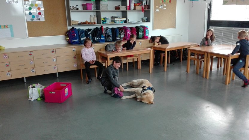 Posamezni učenci so Oliju lahko pokazali svoje bralne spretnosti in ga pobožali. Drugi so mu čistili tačke, mu ščetkali zobe in ga krtačili. Oli obiskuje pasjo šolo, zato nam je pokazal svoje veščine in nekaj trikov. Med temi je bilo zagotovo najbolj zanimivo, kako je Oli pravilno izračunal zastavljeni račun.
