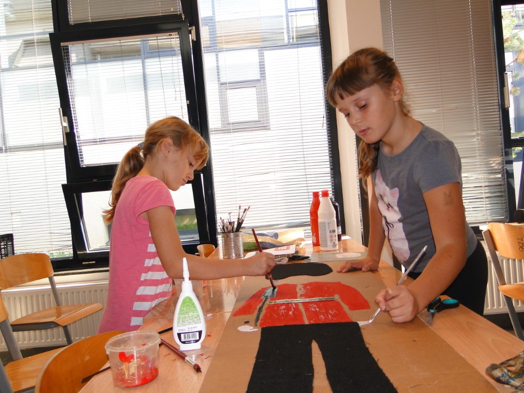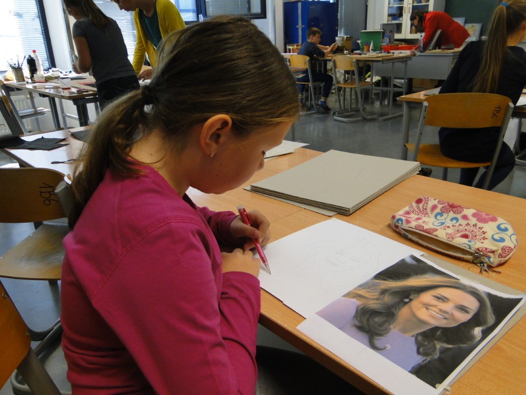 V okviru sobotne delavnice ”Pokukajmo v dežele Združenega kraljestva” smo imeli tudi slikarsko delavnico, kjer so učenci lahko ustvarjali portrete pomembnih ljudi te dežele. Na delavnico smo povabili gostjo, ki nam je pokazala svoj opus portretov, umetnico Matejo Marinko. Pokazala nam je različne pristope, tehnike in materiale, ki jih ob tem uporablja. Ob prijetni angleški glasbi so nastajali čudoviti portreti. Poleg tega smo imeli možnost barvanja in ustvarjanja tipičnih simbolov Londona, kot so rdeča telefonska govorilnica, dvonadstropen avtobus oz. double-decker ter pravo britansko kraljevo gardo. V črno-beli tehniki je nastal tudi Blackbeard, angleški pirat, ki je znan po črni bradi in strahopetnem videzu.