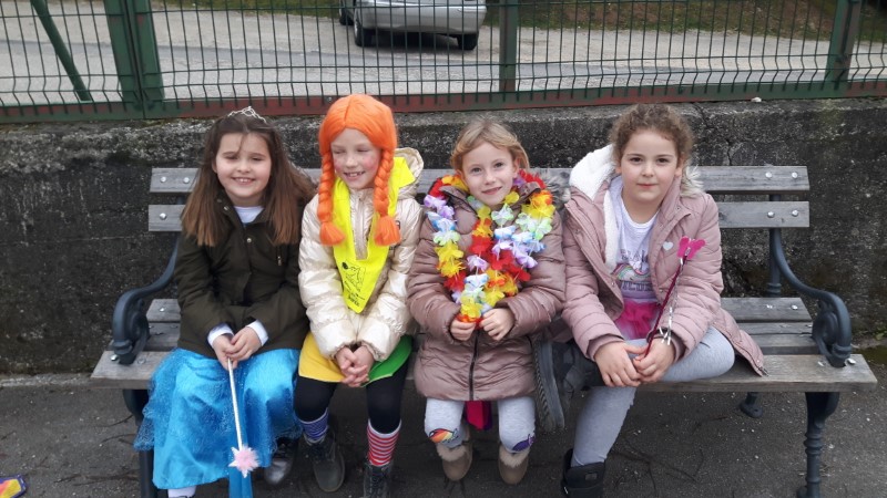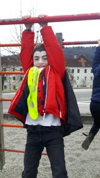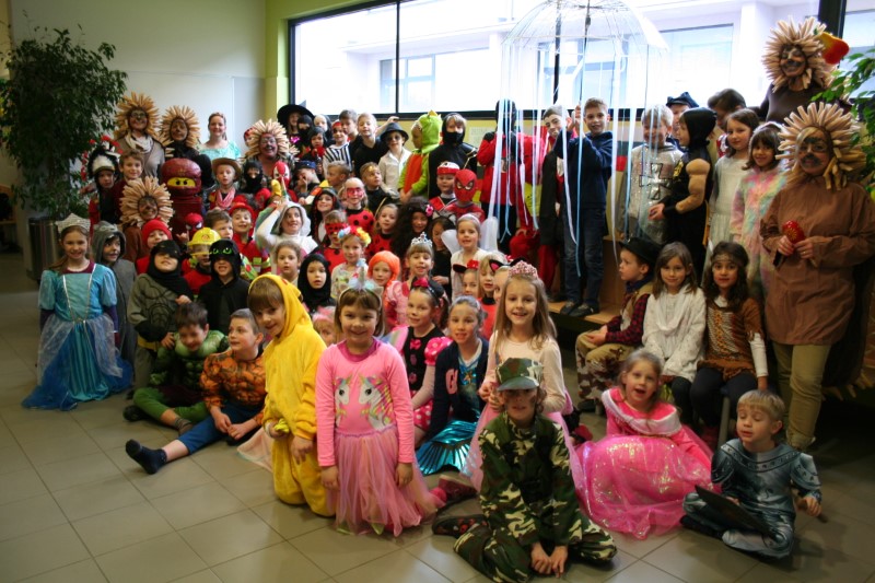 V šoli smo naredili skupinsko fotografijo. Pa naj še kdo reče, da pust ni norčav. Hura, naj živi pust – mastnih in krivih ust!