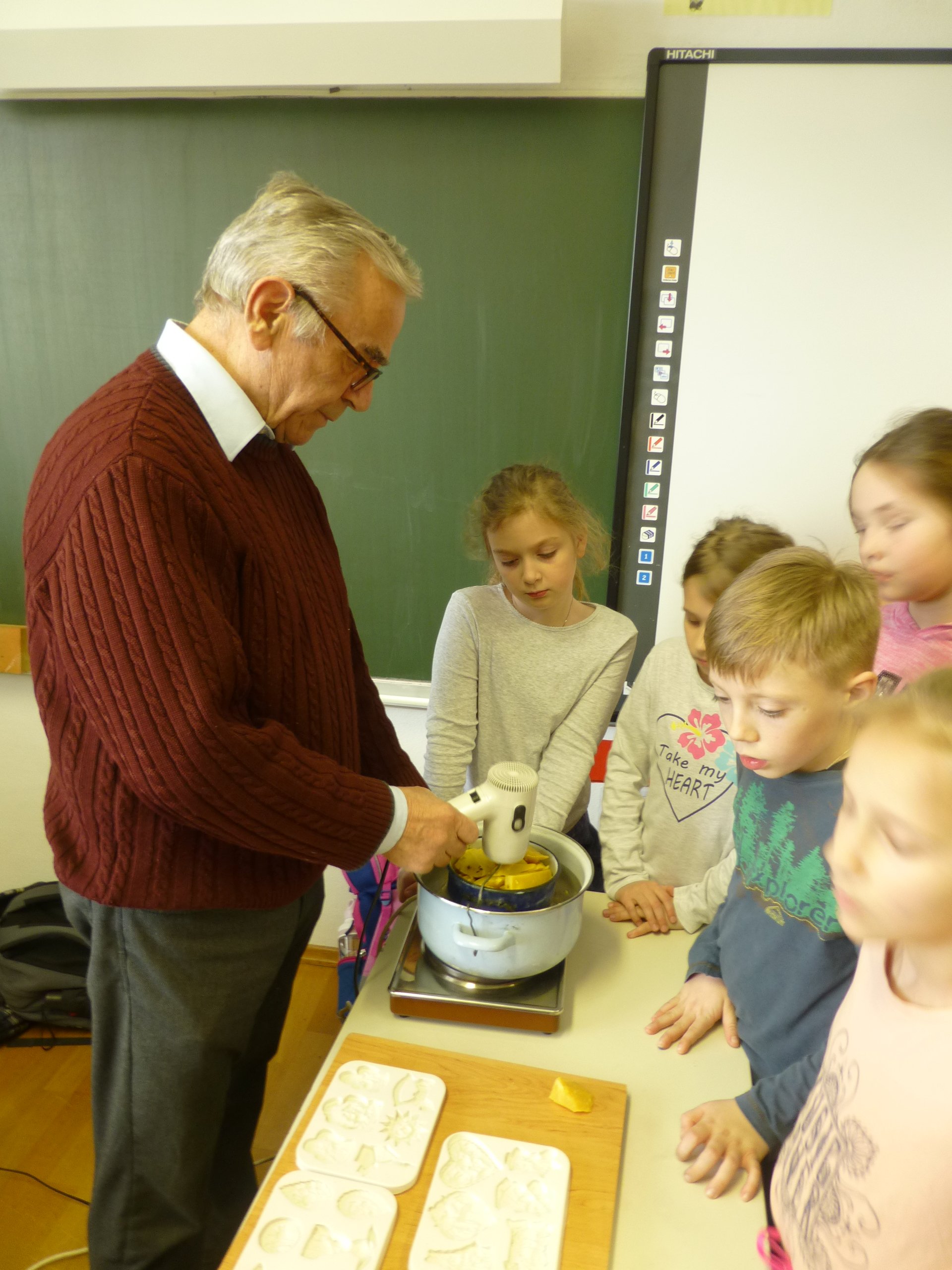 V torek, 3. 3. 2020, nas je pri sprostitveno-ustvarjalnem krožku obiskal gospod Stane Kovačič, muljavski čebelar. Za učence 3. in 4. razreda PŠ Muljava je pripravil zelo poučno predstavitev čebel. Predstavil jim je tudi plod njihovega marljivega dela, vosek. Iz njega so si učenci izdelali svečko in okraske. Druženje je potekalo v sproščenem vzdušju in ob prijetnem vonju topljenega voska, ki nas je opominjal na pomembnost te male živalice, ki pa je še kako velika.