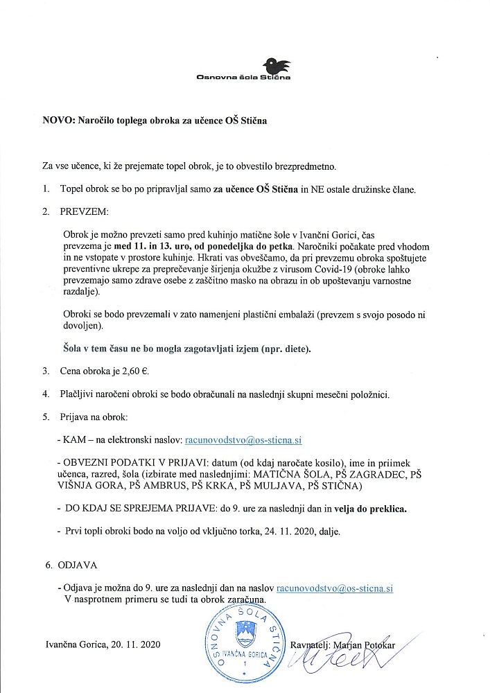 Post navigation Zbiranje prijav na kosilo v času šolanja na daljavo Navodila za vedenje med videokonferencami