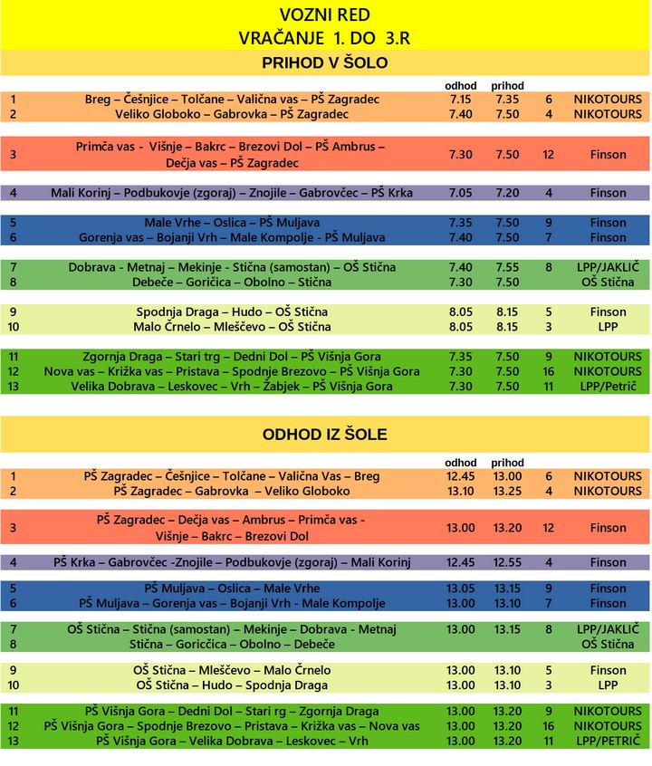 Ob vračanju učencev I. triade k pouku v šolske prostore, smo pripravili prilagojen vozni red, ki temelji na poizvedbi o potrebah, ki je bila opravljena v začetku meseca decembra 2020.