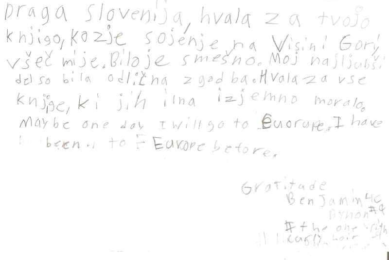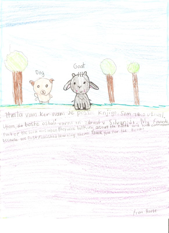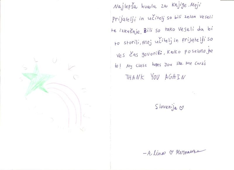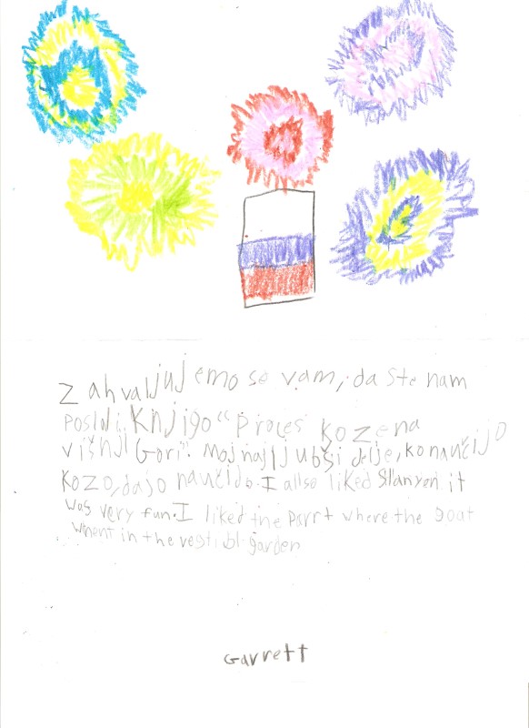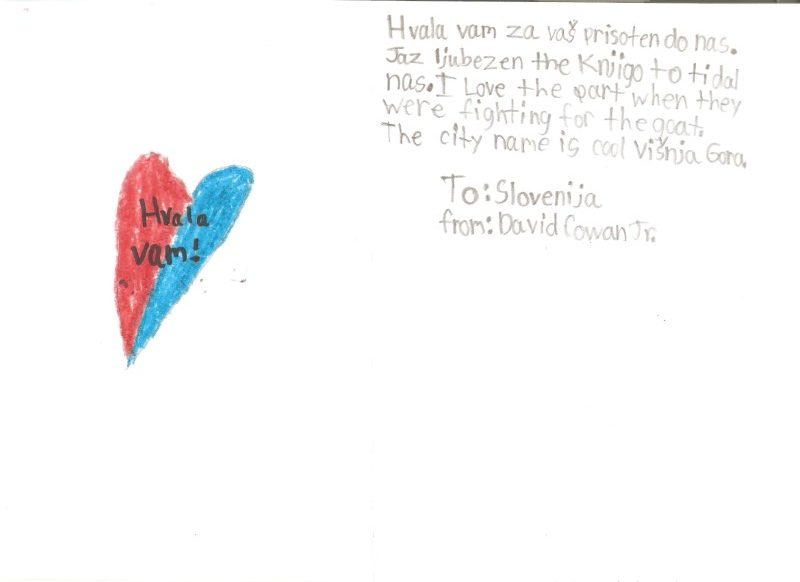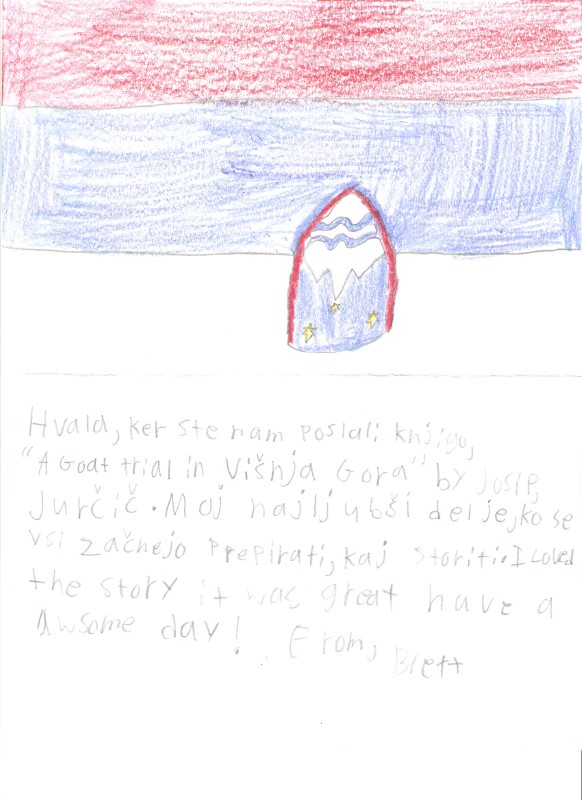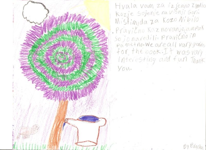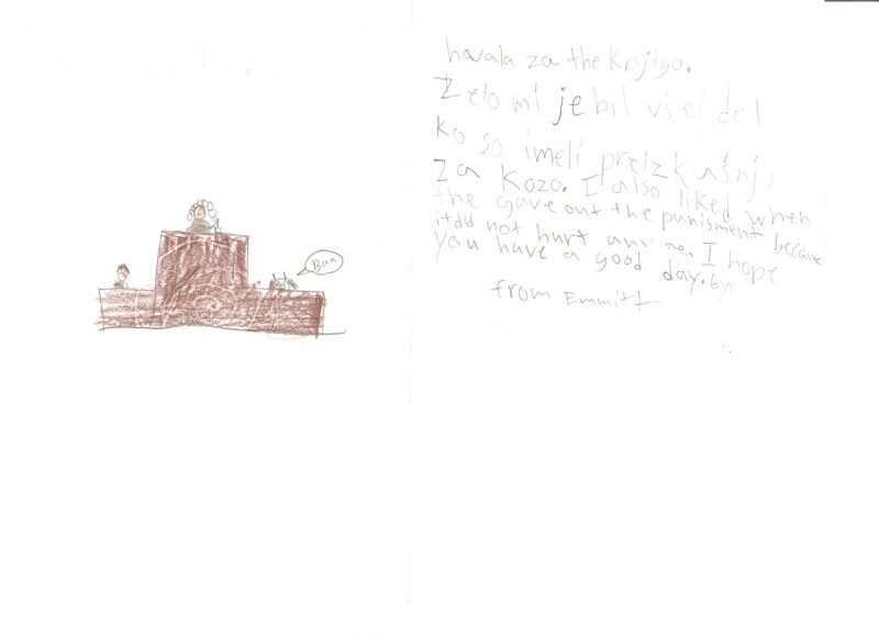 Praznovanje Jurčičevega leta smo v šolski knjižnici počastili z mednarodnim projektom, zato smo se povezali s šolo St. Junipero Serra Catholic School iz Amerike, ki jo obiskuje Alina Hernandez, Američanka slovenskih korenin, ter jim poslali angleške prevode Jurčičeve Kozlovske sodbe. Alina živi v Kaliforniji, a pride junija vsako leto v Ivančno Gorico, kjer dočaka konec šolskega leta s svojimi vrstniki na Osnovni šoli Stična. Njen razrednik v ameriški šoli g. Brian Allison je bil nad idejo navdušen, zato je poskrbel, da so knjigo takoj prebrali v razredu. Sodeč po likovnih zdelkih, ki so nam jih poslali učenci, je bila zgodba zelo všeč tudi njim. Potrudili so se in v svoje izdelke vključili tudi slovenščino. Pri tem jim je pomagala Alina, ki je odigrala vlogo posrednice med našimi in ameriškimi učenci. Ko je Alina junija prišla v Slovenijo, je učencem v svojem slovenskem razredu izročila likovne izdelke njihovih vrstnikov iz šole St. Junipero Serra Catholic School. V teh izdelkih so učenci opisovali zgodbo, ki jim jo je prebral učitelj Brian, se zahvalili, obljubili, da bodo zgodbo prebrali tudi doma s starši, povedali, da so se naučili nekaj slovenskih besed, da je zgodba poučna, da si želijo priti na obisk v Evropo itd.