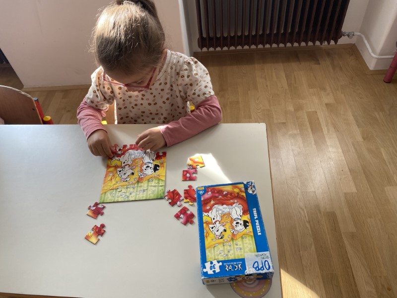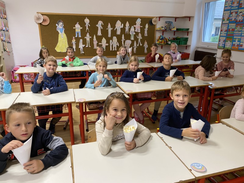 V ponedeljek smo se razveselili lepega vremena, zato smo se odločili, da likovno umetnost preživimo v gozdu. Učenci so iz materiala, ki so ga našli na gozdnih tleh, izdelali razne izdelke in bivališča za gozdne živali ter škratke. V torek so učenci v šolo prinesli svojo najljubšo igračo, med odmori pa smo igrali družabne igre, sestavljali sestavljanke in poslušali glasbo. V sredo nas je obiskal policist, ki nam je razložil in pokazal, kako pravilno prečkamo cesto, kasneje pa smo imeli še šolski kino (kokice seveda niso manjkale). V četrtek smo pripravili dežnike in škornje ter se odpravili na sprehod v dežju, v petek pa smo prav tako razigrano preživeli dan, saj smo med odmori poslušali glasbo in se veliko igrali.