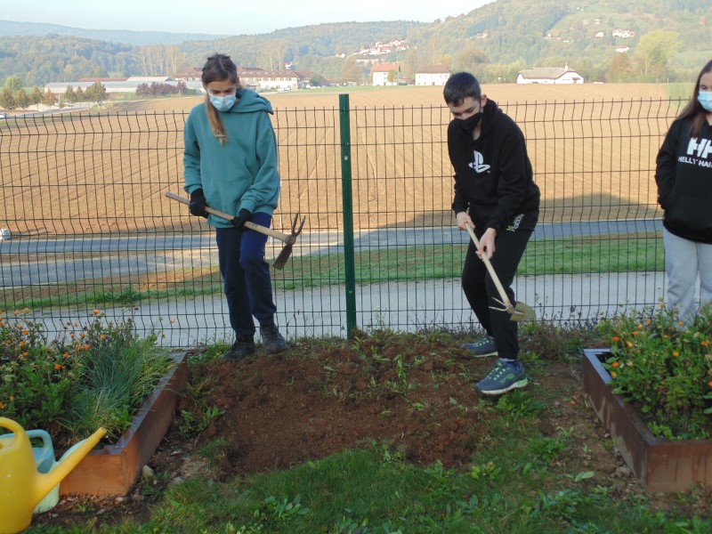 Učenci 8. c razreda matične šole so z učiteljico Tino Finc v drugi polovici oktobra posadili čebulice rumenega žafrana. Pri sajenju so pokazali odlične ročne spretnosti in veliko zanimanja za sodelovanje. Na šolskem vrtu so jih posadili v obliki Davidove zvezde, ki je judovski simbol.