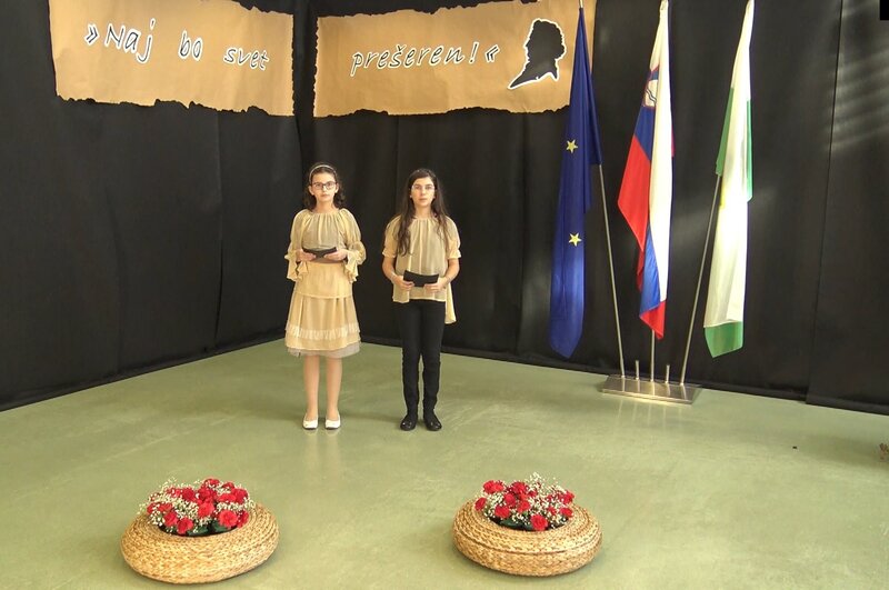 Letošnjo prireditev v počastitev Prešernovega dne smo poimenovali »Naj bo svet prešeren!«, saj smo želeli, po ustaljeni strugi, ki si jo utira tok kulture na naši šoli, ponesti Prešernov duh odprtosti in optimizma med učence, učitelje, starše in prijatelje.