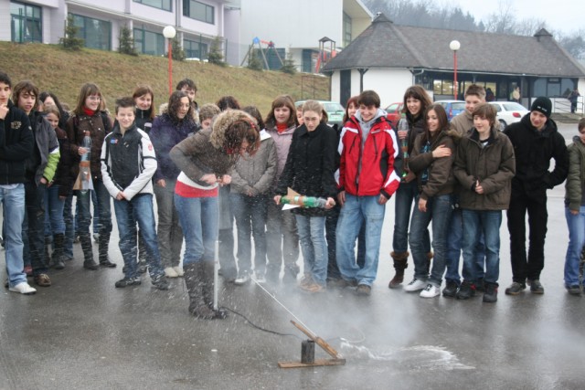 V drugem delu so učenci s pomočjo multimedijske predstavite “obiskali” planete našega osončja. V tretjem delu pa so v delavnicah raziskovali nastanek kraterja in izdelovali rakete na vodo. Na šolskem dvorišču smo jih uspešno lansirali.