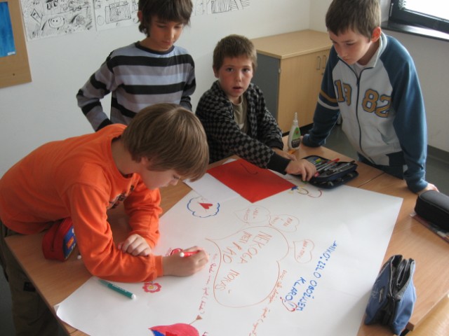 V 4.a in 4.b razredu smo na to temo izdelali zanimive plakate, saj našim učencem pisemčki, srčki, SMS sporočila, vzdevki, zardevanje in še kaj ni tuje.