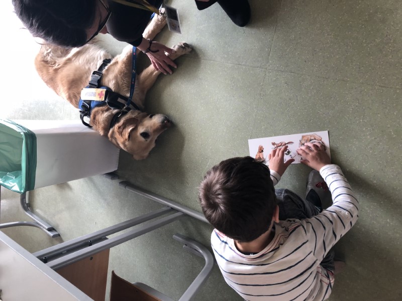Ob prisotnosti psa posameznik pozabi na svoje težave, strahove, stiske. Svojo pozornost usmeri na žival in se ji posveti. Ob psu vse steče lažje. Štirinožec ne ocenjuje branja, ne vidi učnih težav in telesnih posebnosti. Ne graja in ne ocenjuje. Otrok zato ob tem gradi samozavest, kar mu daje motivacijo in veselje, da z aktivnostjo nadaljuje. Ponavadi ga kuža le nagradi  z velikim mokrim poljubčkom.