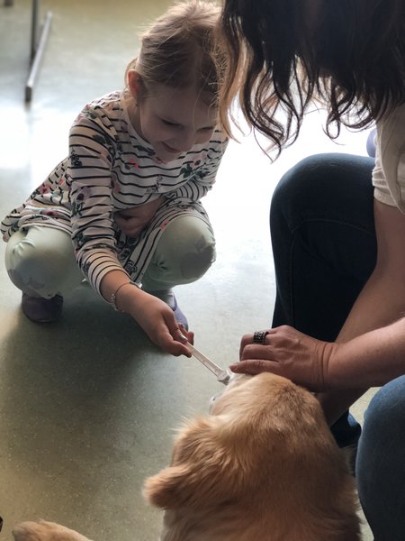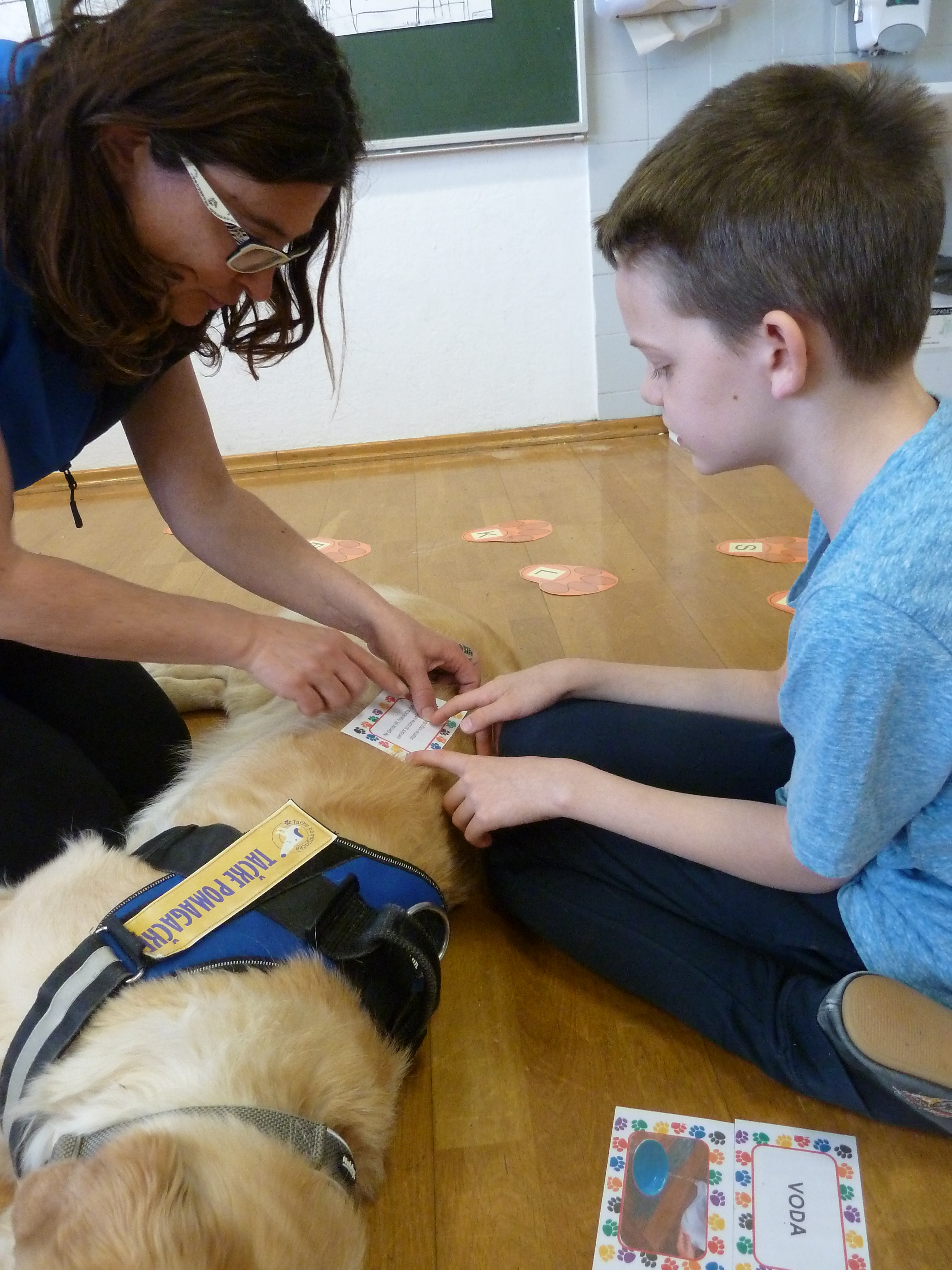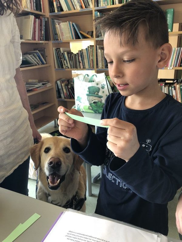 V letošnjem šolskem letu (2018/2019) smo si v sodelovanju z »našim terapevtskim parom«, gospo Jano Miklič in njenim Olijem, iz društva Tačke pomagačke projekt zastavili nekoliko širše. V času od septembra do novembra sta Jana in Oli obiskala učence vseh oddelkov 2. razreda naše šole. Obisk je trajal eno šolsko uro. Srečanje je bilo namenjeno tako začetnemu opismenjevanju, kot tudi osveščanju otrok o odnosu in skrbi do živali.