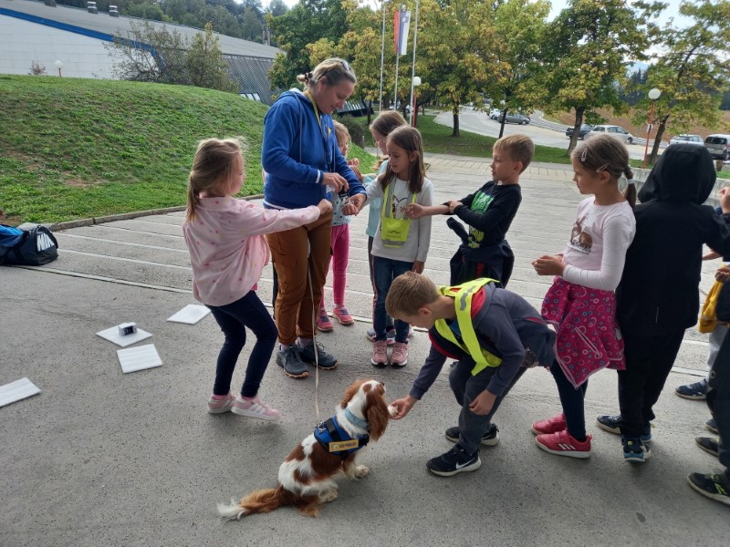V ponedeljek, 4. 10. 2021, smo drugošolci na svetovni dan živali dobili prav poseben obisk. Z Društva Tačke pomagačke sta nas namreč obiskala zlati prinašalec Oli in kavalirka Aisha. Oba oddelka sta že pred prihodom prejela pismo svojega kosmatinca. Ob prihodu smo ju tiho pričakali in se z njima odpravili na zabavno uro druženja. Najprej sta nas povohala in spoznala, nato pa sta nam prikazala tudi nekaj trikov. Odkrili smo, da je Oli pravi matematik, saj zna izračunati zelo enostavne račune. Včasih se sicer še malo zmoti, a vsi vemo, da vaja dela mojstra. Prav tako sta oba zelo dobra pri pospravljanju svojih igrač in dogovorili smo se, da se bomo tudi mi trudili skrbeti za svoje šolske predale. Poleg vseh zanimivosti smo otroci opravljali tudi razne naloge – sprehajanje psa, hranjenje, umivanje zob, česanje ipd. V času obiska smo se tako naučili kar nekaj o skrbi za psa, prav tako pa smo se ob igri z njima naučili pravilnega ravnanja z živalmi. Ob koncu obiska smo bili vsi drugošolci navdušeni in smo kužkoma veselo pomahali v slovo.