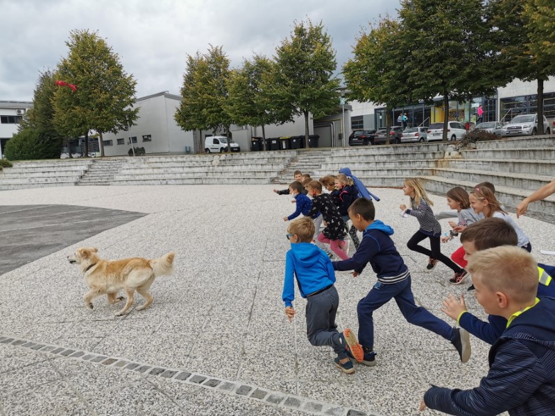 V torek, 22. 9. 2020, smo učenci 2. razreda s Podružnične šole Krka že navsezgodaj prejeli pismo psičke Aishe. Predstavila se nam je ter povedala, da nas obišče. To je bilo enkratno presenečenje. Učenci kar niso mogli verjeti. Vsi smo jo z navdušenjem čakali. In končno sta vodnici le pripeljali psičko. Bila je prikupna, belo rjave barve z velikimi, rjavimi očmi. Izvedeli smo, da Aisha rada lovi metulje, se kopa v bazenu, igra z bratcem in sestrico ter hodi v šolo. Učenci so jo lahko peljali na sprehod, božali, umivali zobe, pobirali pasje iztrebke, ki seveda niso bili pravi. Ugotovili smo, da nam je na nek način zelo podobna. Čas v družbi psičke Aishe je prehitro minil in si želimo, da nas še kdaj obišče.